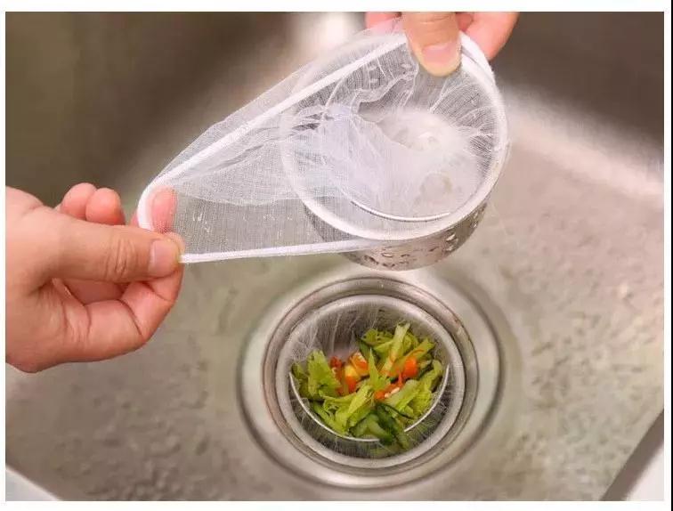 一个小小的涤纶网眼袋,把它套在水槽上,食物残渣都会被细小的网眼挡住,残渣堆满了,就可以一拎扔掉,方便又快捷,还省掉了清理水槽的麻烦。有了它,再也不用担心下水道被堵,而且也不用拿手抠了……