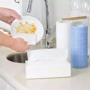 于是就有给力的网友发现了这种无纺布抹布。不掉屑,吸水性强,还可以反复搓洗。面对灶台上的水渍油渍,只要轻轻一擦就可以了。你可以搓洗之后再用,也可以擦完就丢,一身轻松。